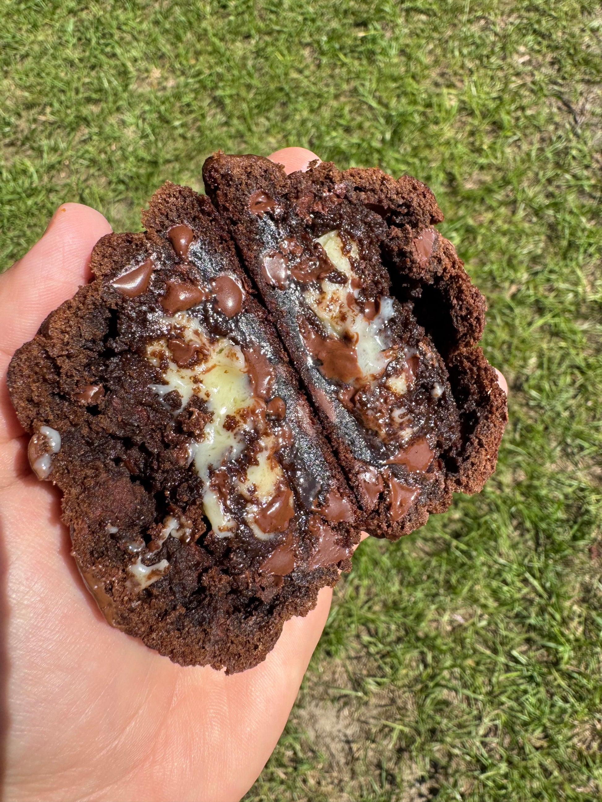 Dark chocolate cookie dough with a molten white chocolate center, creating the perfect harmony of rich and sweet.